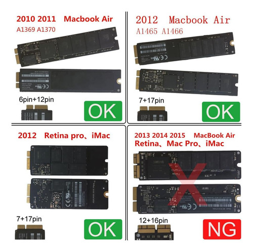No es compatible con los MacBook Air o Pro 2013 o superiores que llevan almacenamiento PCIe.