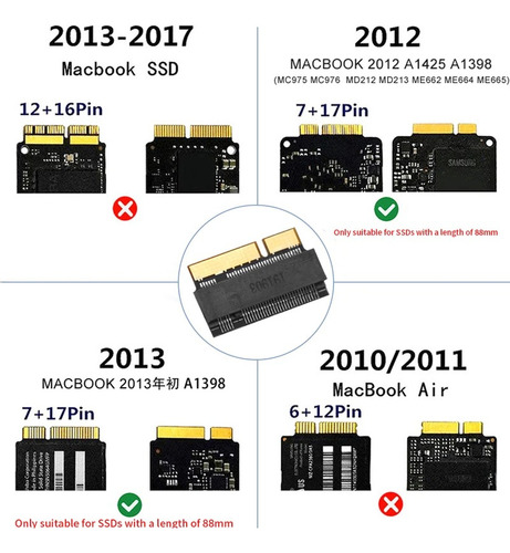 Adaptador Ssd M.2 Sata Macbook Pro A1425 A1398 2012 Y 2013
